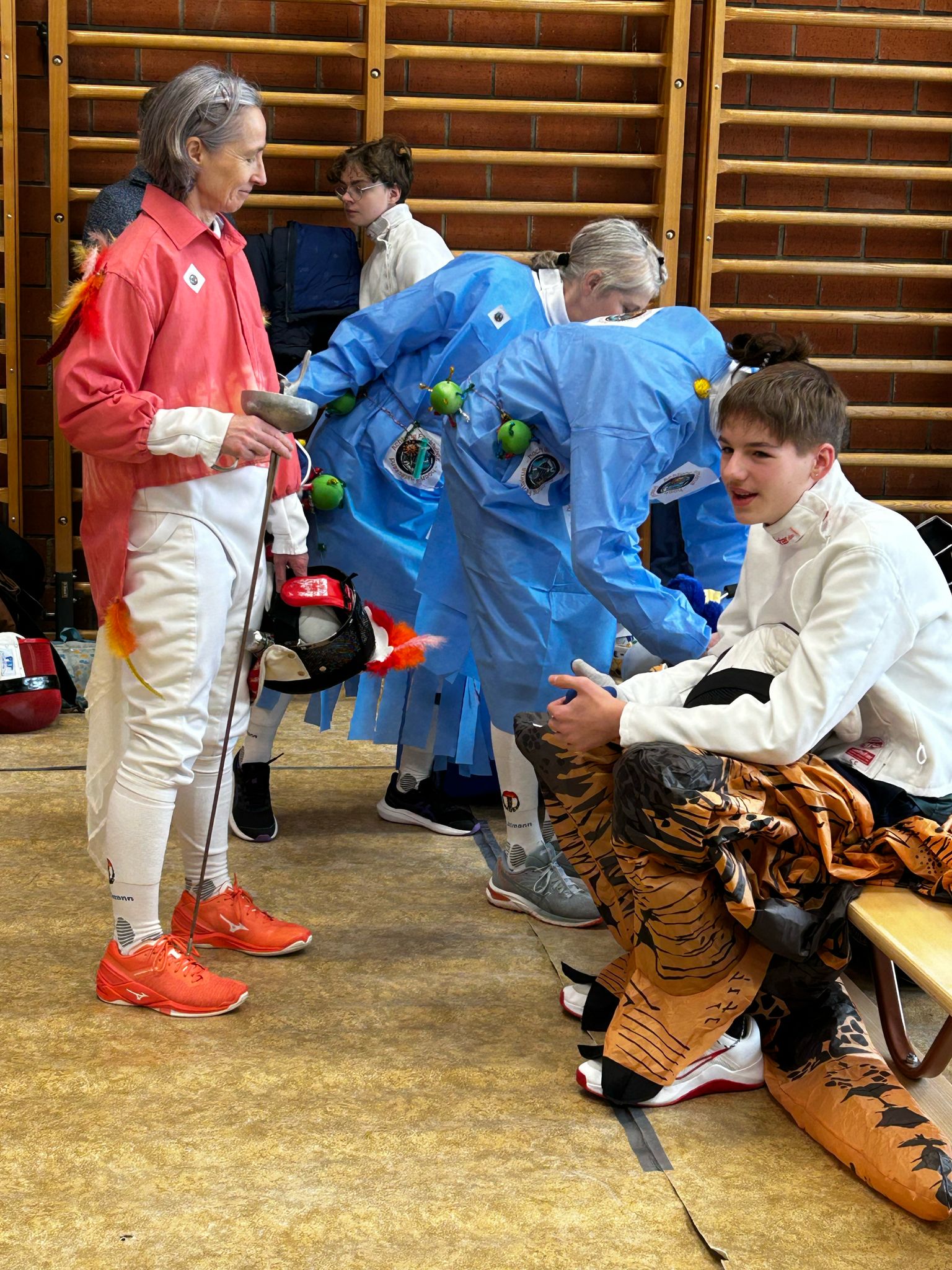 Als die „Fechtfasnächtler“ eintrafen, wurde schnell klar, dass der Kreativität in diesem Jahr keine Grenzen gesetzt waren. Graf Dracula, eine Nonne, Harry Potter, Clowns und viele weitere fantasievolle Gestalten nahmen am Turnier teil.