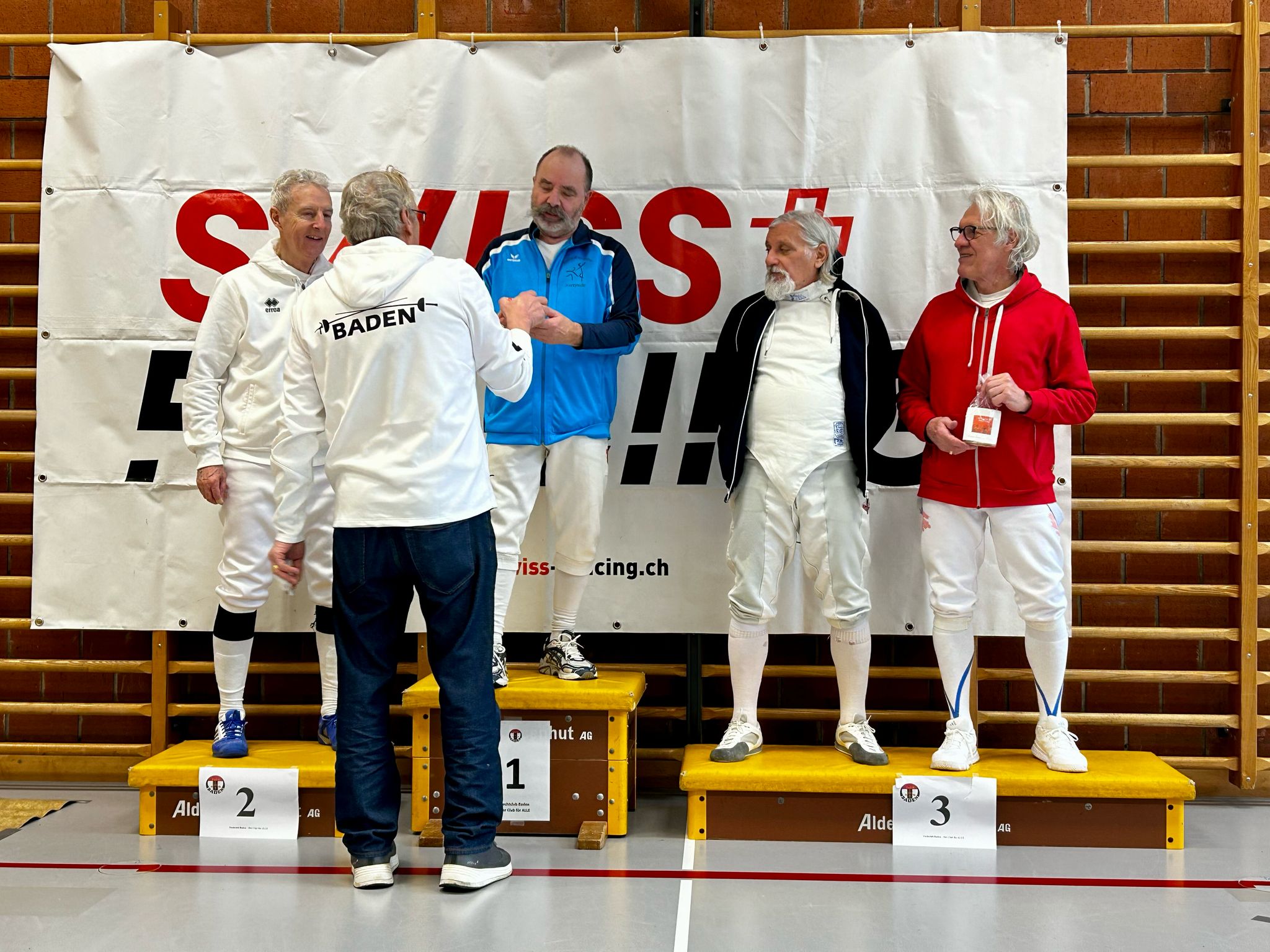 Der darauffolgende Sonntag stand ganz im Zeichen unseres mit Spannung erwarteten, ersten CNV. Selbst das Wetter schien sich auf das Geschehen einzustellen – ein sanfter Regen begleitete die Athleten auf ihrem Weg zur Turnhalle Tannegg. Pünktlich «Smile» und mit strahlenden Gesichtern versammelten sich 47 Fechterinnen und Fechter in den Altersklassen V40 bis V80+. Es war beeindruckend zu beobachten, wie leidenschaftlich und engagiert alle Kämpfer, unabhängig von ihrem Alter, um den Sieg kämpften. Fechten bleibt ein faszinierender Sport für Jung und Alt!