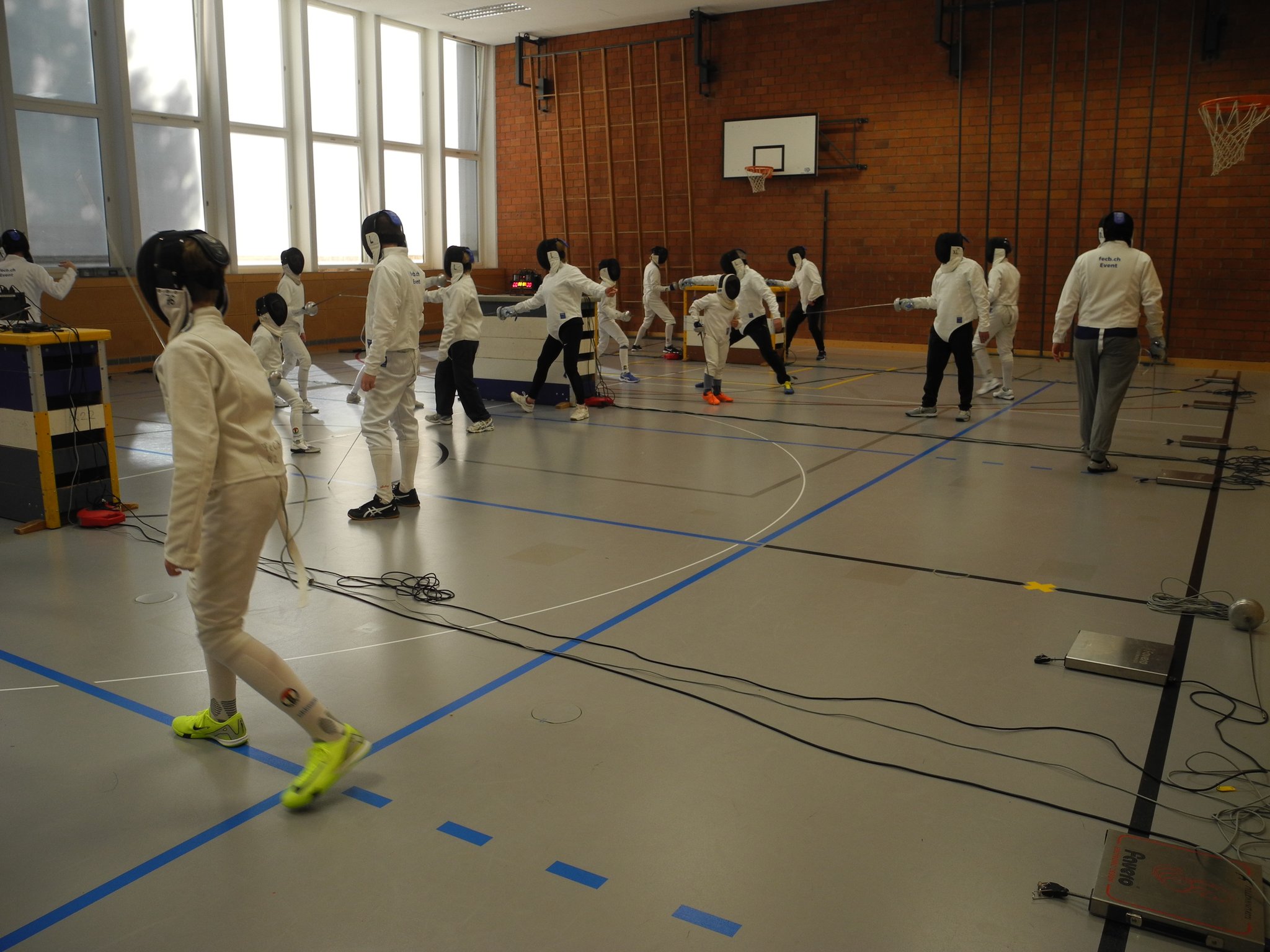 Rund 30 Fechter und Fechterinnen liessen sich die gute Laune nicht durch den miesen Regen verderben und nahmen hochmotiviert am Turnier teil.