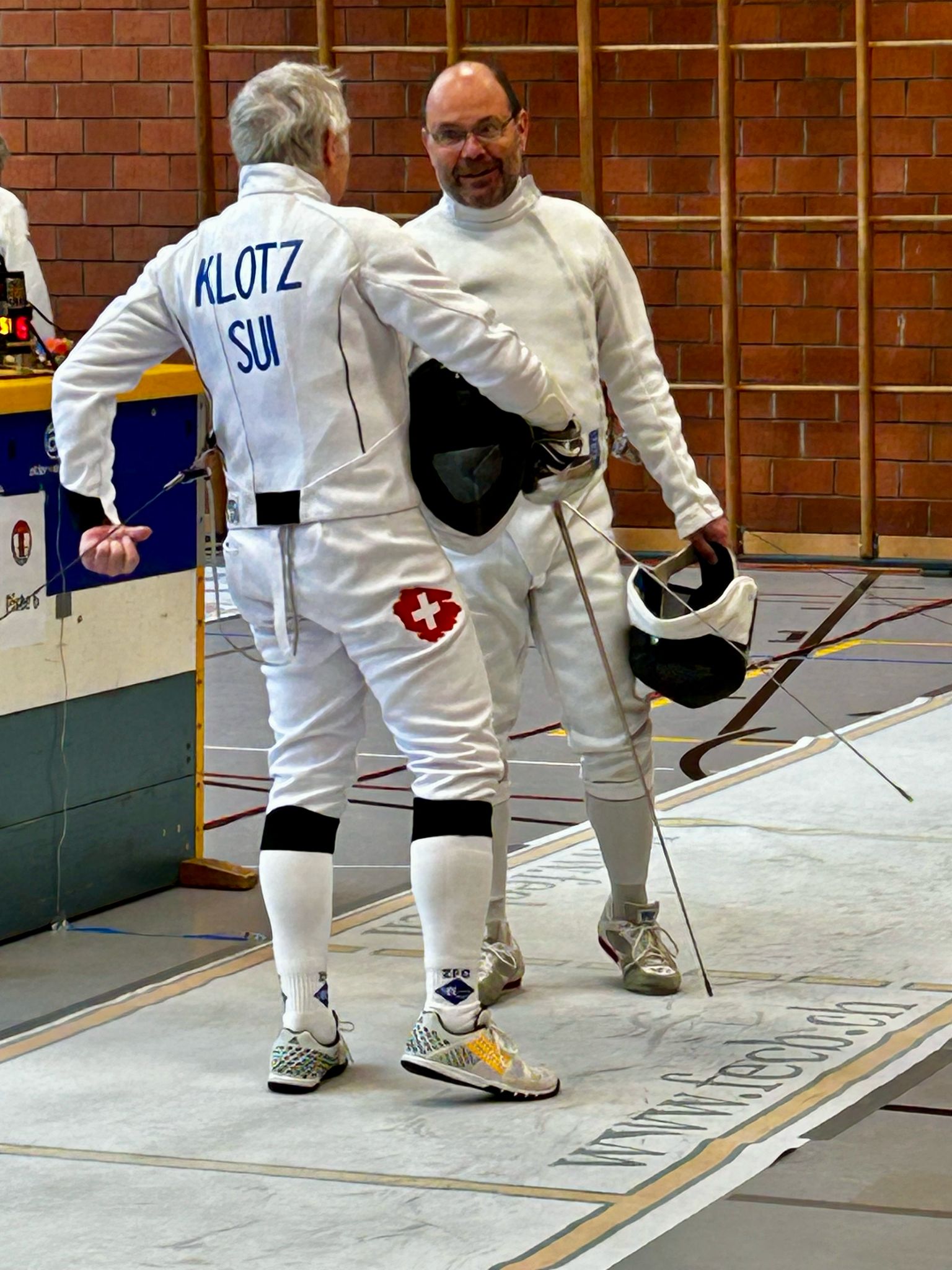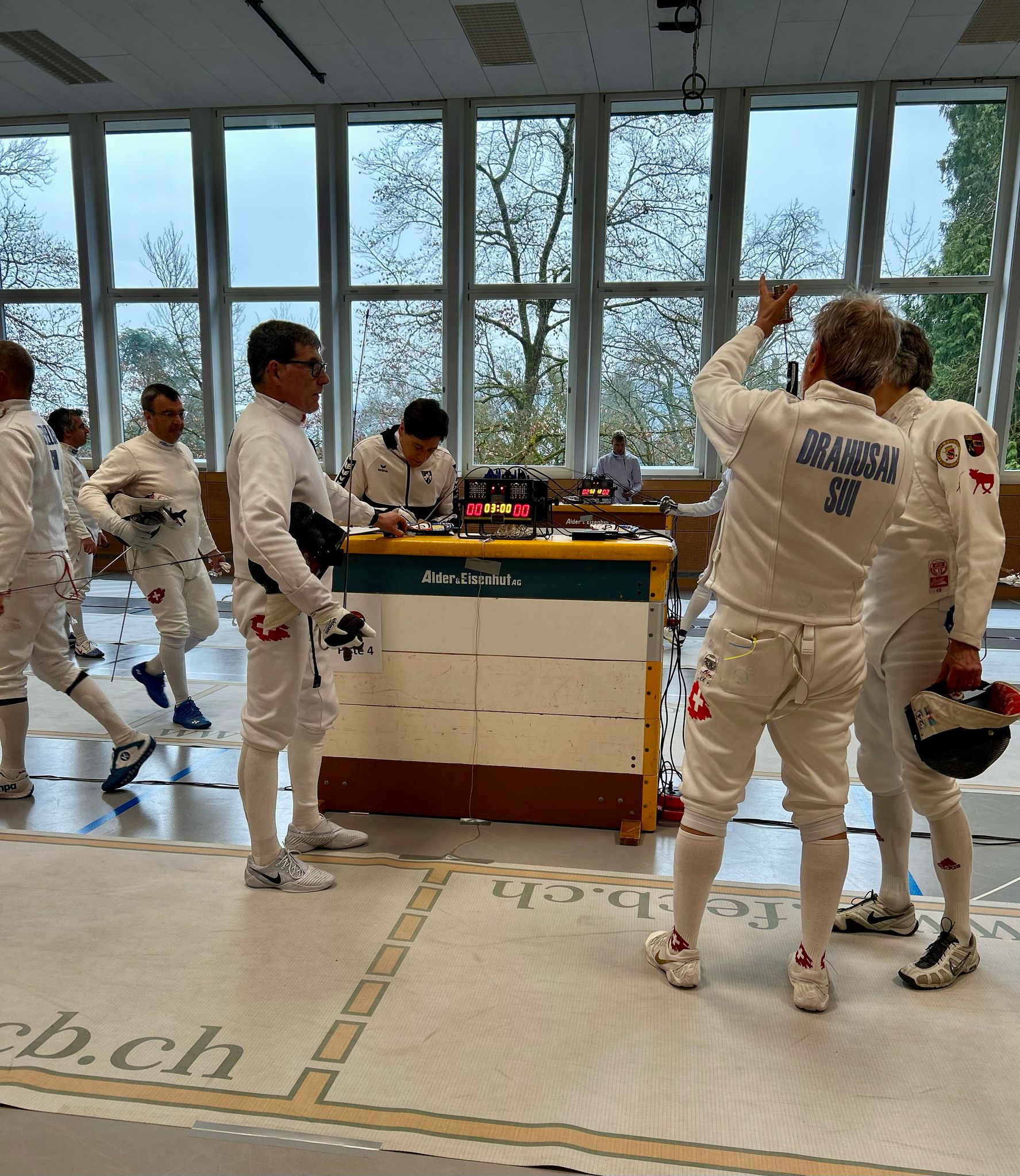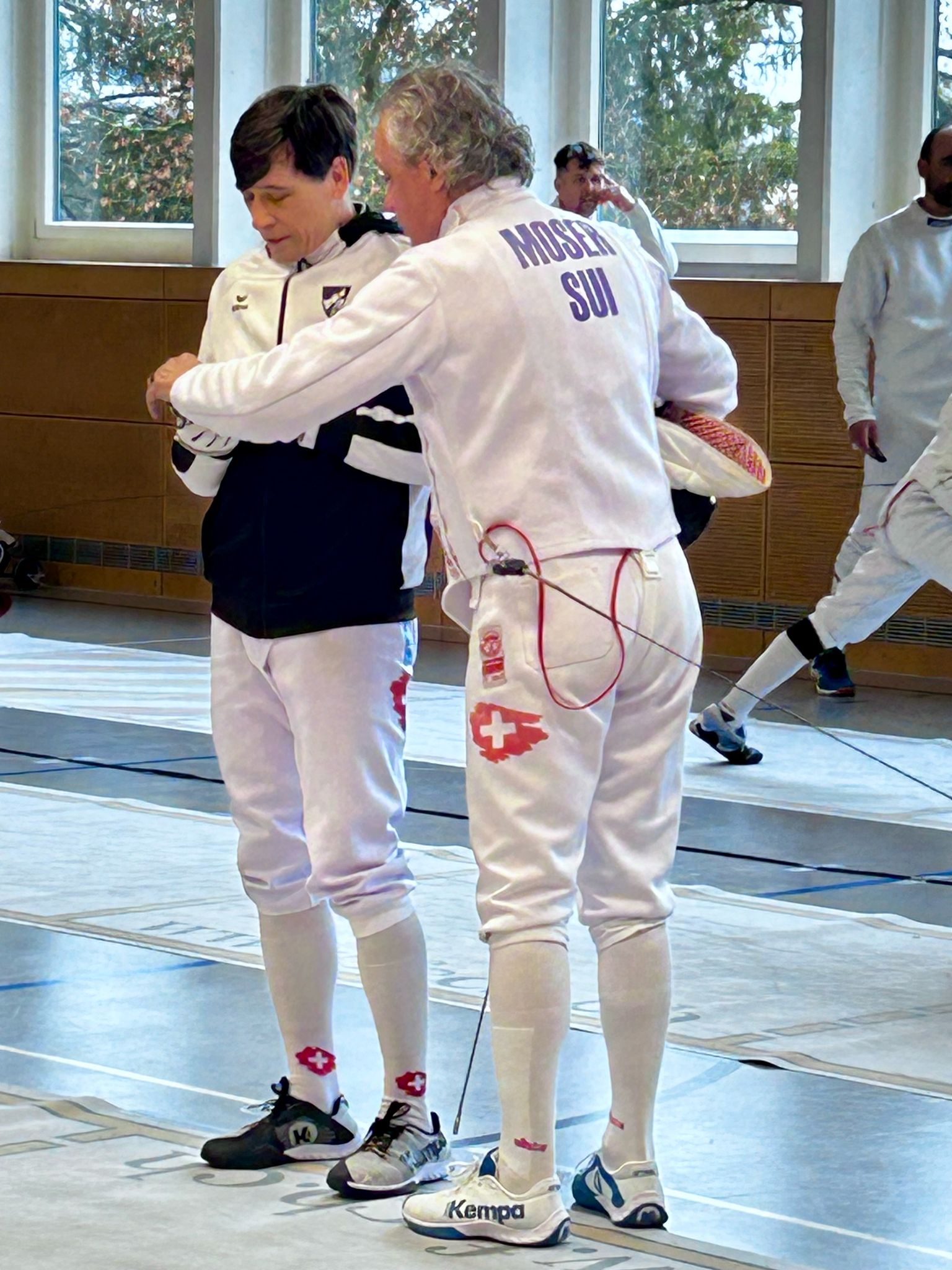 Der darauffolgende Sonntag stand ganz im Zeichen unseres mit Spannung erwarteten ersten CNV. Selbst das Wetter schien sich auf das Geschehen einzustellen – ein sanfter Regen begleitete die Athleten auf ihrem Weg zur Turnhalle Tannegg. Pünktlich «Smile» und mit strahlenden Gesichtern versammelten sich 47 Fechterinnen und Fechter in den Altersklassen V40 bis V80+. Es war beeindruckend zu beobachten, wie leidenschaftlich und engagiert alle Kämpfer, unabhängig von ihrem Alter, um den Sieg kämpften. Fechten bleibt ein faszinierender Sport für Jung und Alt!